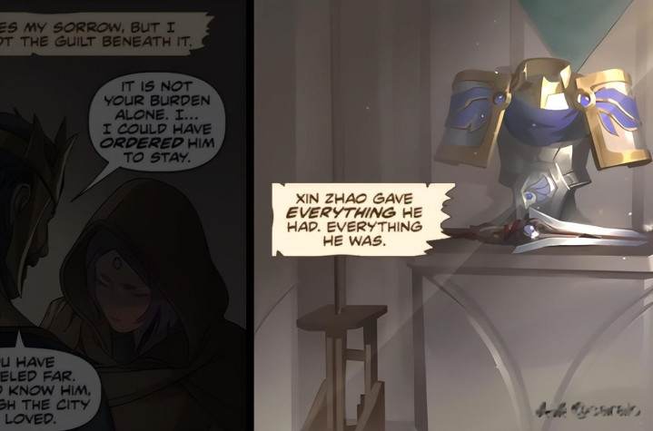 短暂交谈后,嘉文三世对芸阿娜颇为赏识,带她参观了赵信的房间。国王说赵信本可在皇宫任选寝室,而他选择了靠近内花园的一间,只因那里让他想起艾欧尼亚。嘉文三世想为赵信举行国葬,询问芸阿娜赵信葬于何处。但芸阿娜深知双方都无法接受“赵信的灵魂与身躯早已崩毁、且已被重塑为亚恒”这一事实,于是告诉国王那场激战未留下任何遗骸。